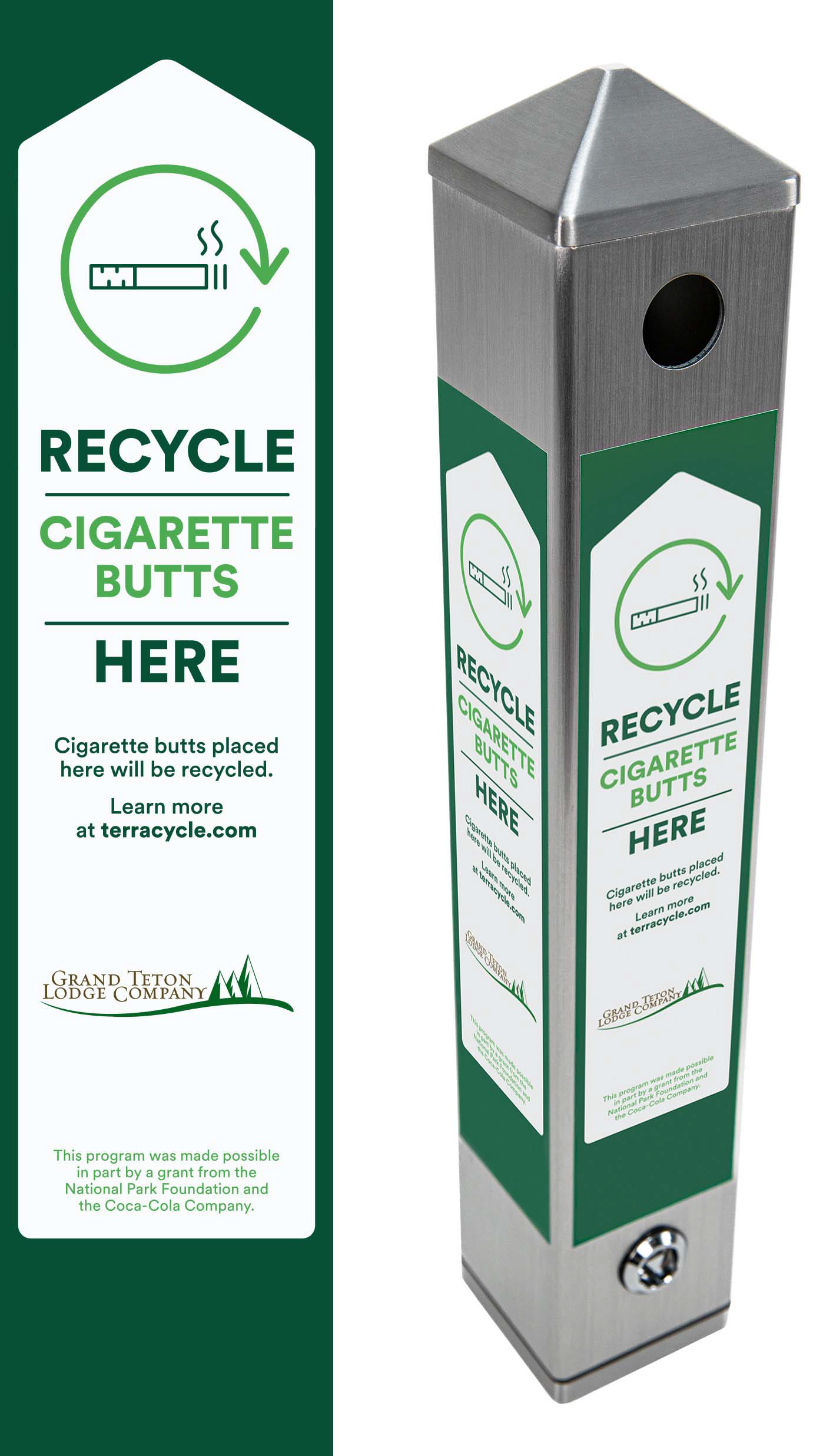 Aside from the clear messaging, the background design and color palette took inspiration from the National Park Service's arrowhead logo. On the side of the unit, an image of the park's iconic geological formation with more information on how to use the station. The other side, doors to access the collected material.